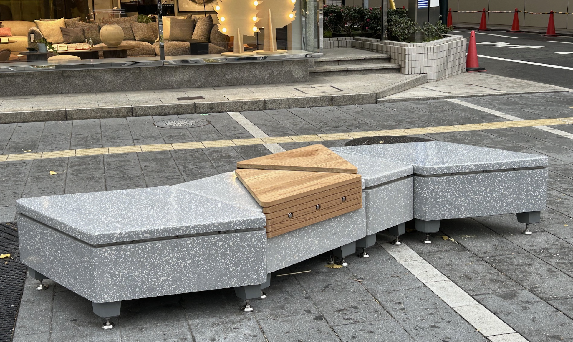 南晃工業独自の技術によって製作されたこのベンチは、強度と耐久性に優れ、長期間にわたり都市景観を美しく彩ります。デザイン性と機能性を兼ね備え、訪れる人々の憩いの場となっています。